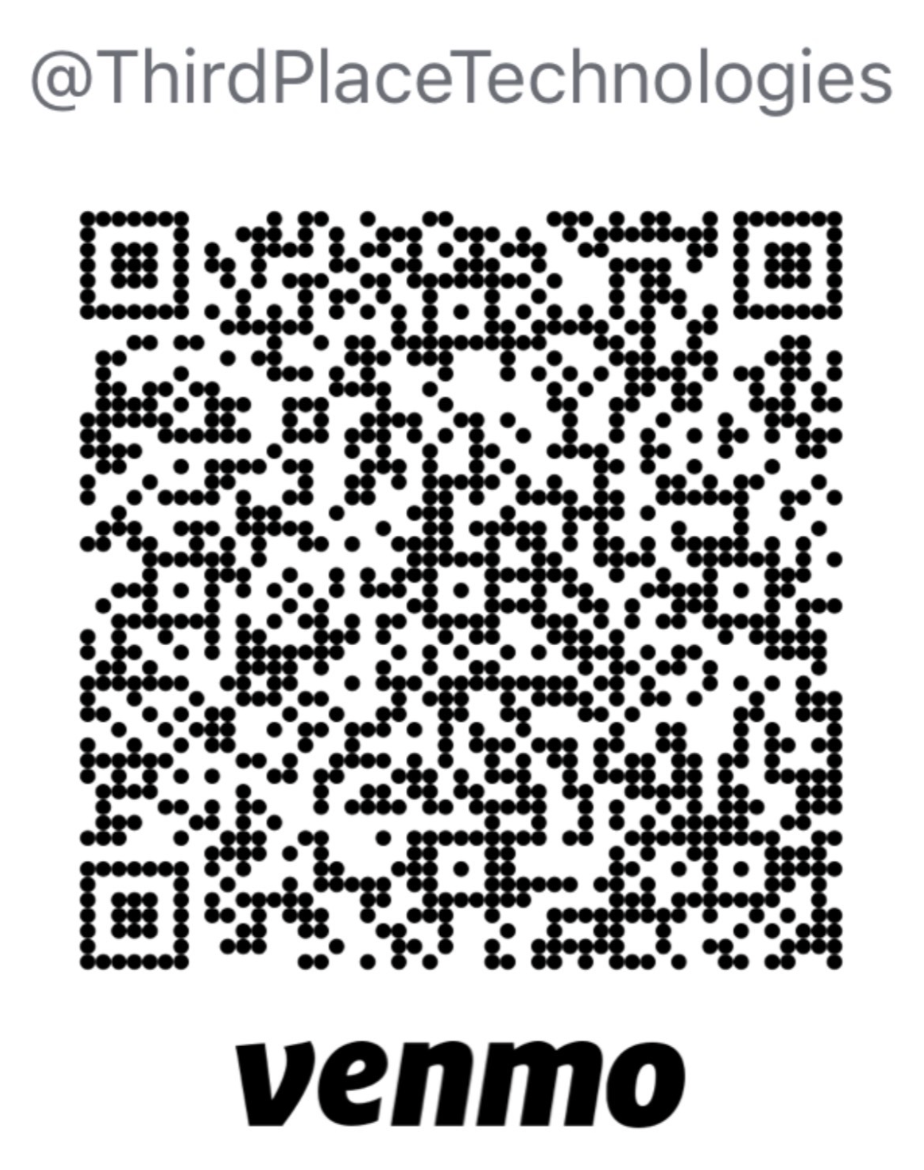 Donate to us via Venmo to @ThirdPlaceTechnologies, or using the QR code to the left. We cannot thank you enough even for the smallest donation to help!